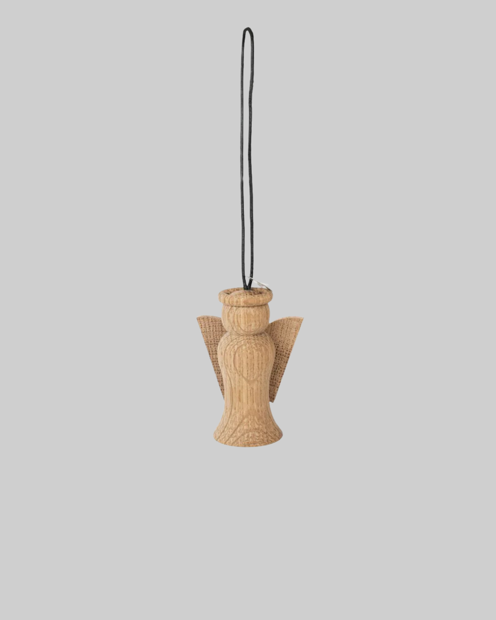 Meticulously hand-carved from solid oak, the Jul Hanging Ornaments by Nikolaj Klitgaard capture the quiet elegance of Danish craftsmanship. Each piece — Bell, Heart, Cone, Tree, and Angel — is finished with a smooth, tactile surface and suspended from a fine leather cord. The balance of precision and warmth makes these ornaments feel timeless, not seasonal.