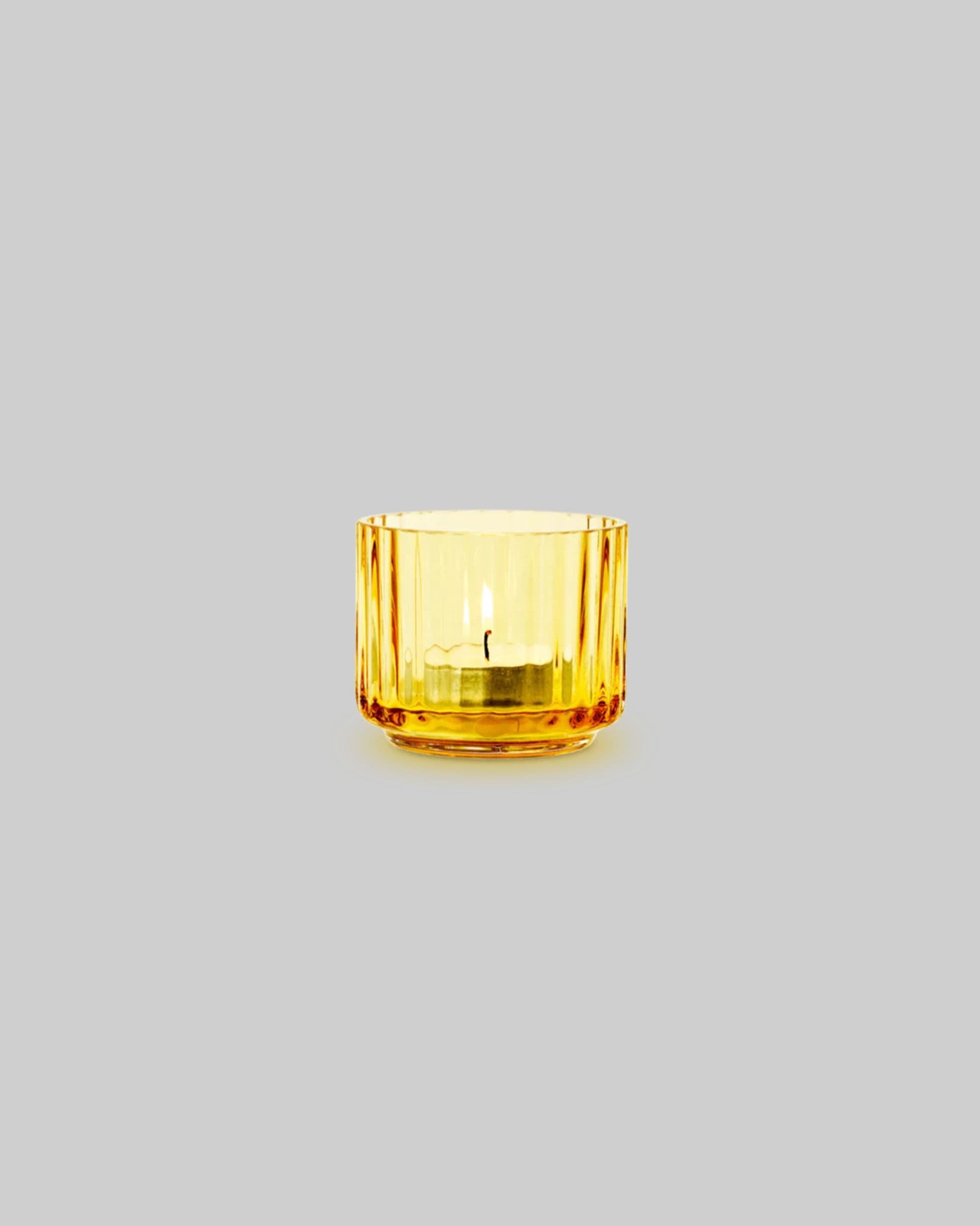 Crafted in mouth-blown glass with Lyngby Porcelæn’s signature vertical grooves, this tealight holder radiates timeless Danish minimalism. Its sculptural form captures and diffuses light beautifully, creating a serene glow.