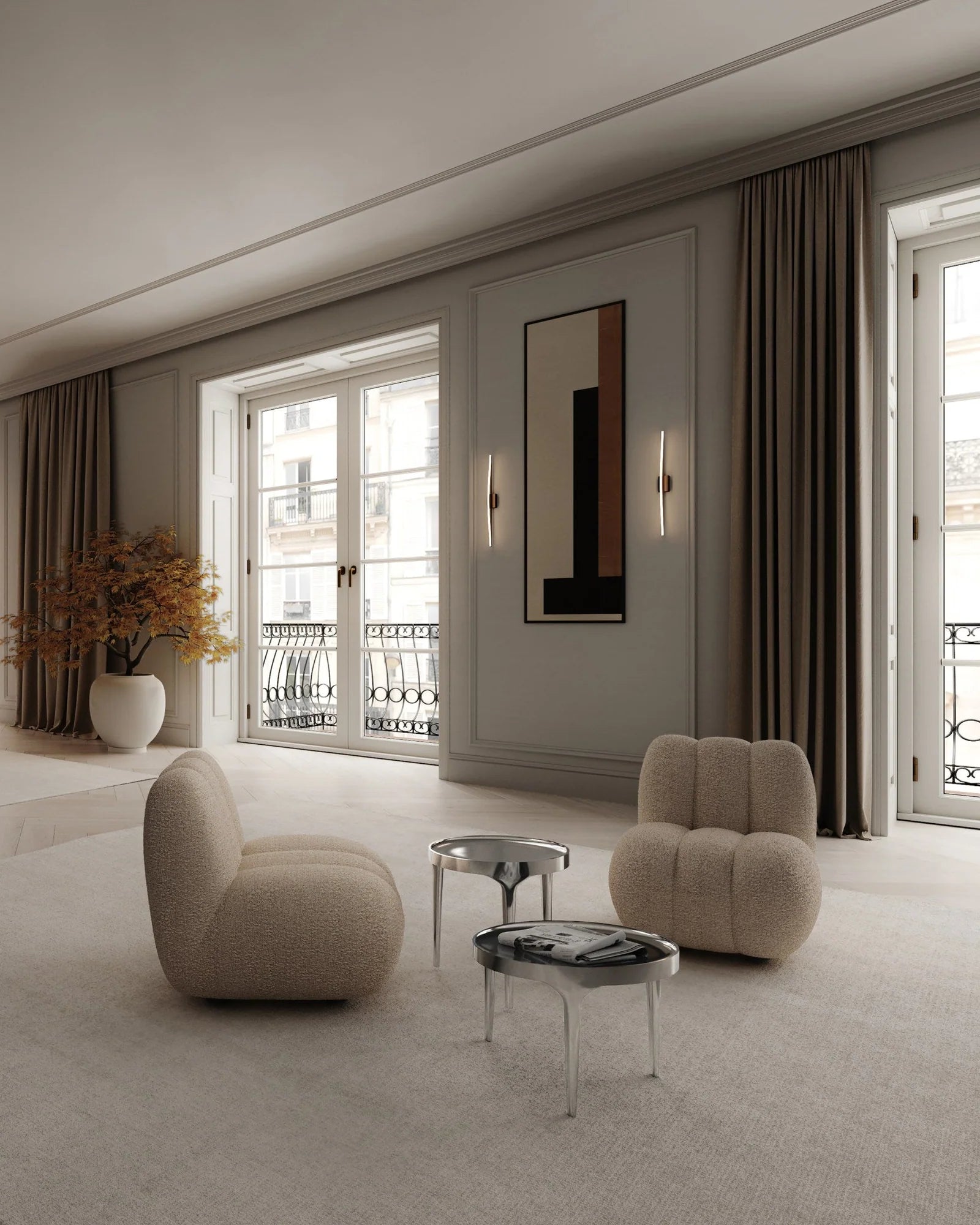 Also available in a polished chrome variation, offering a sleek, mirror-like surface for a striking contrast. A versatile statement piece that blends artistry with function.